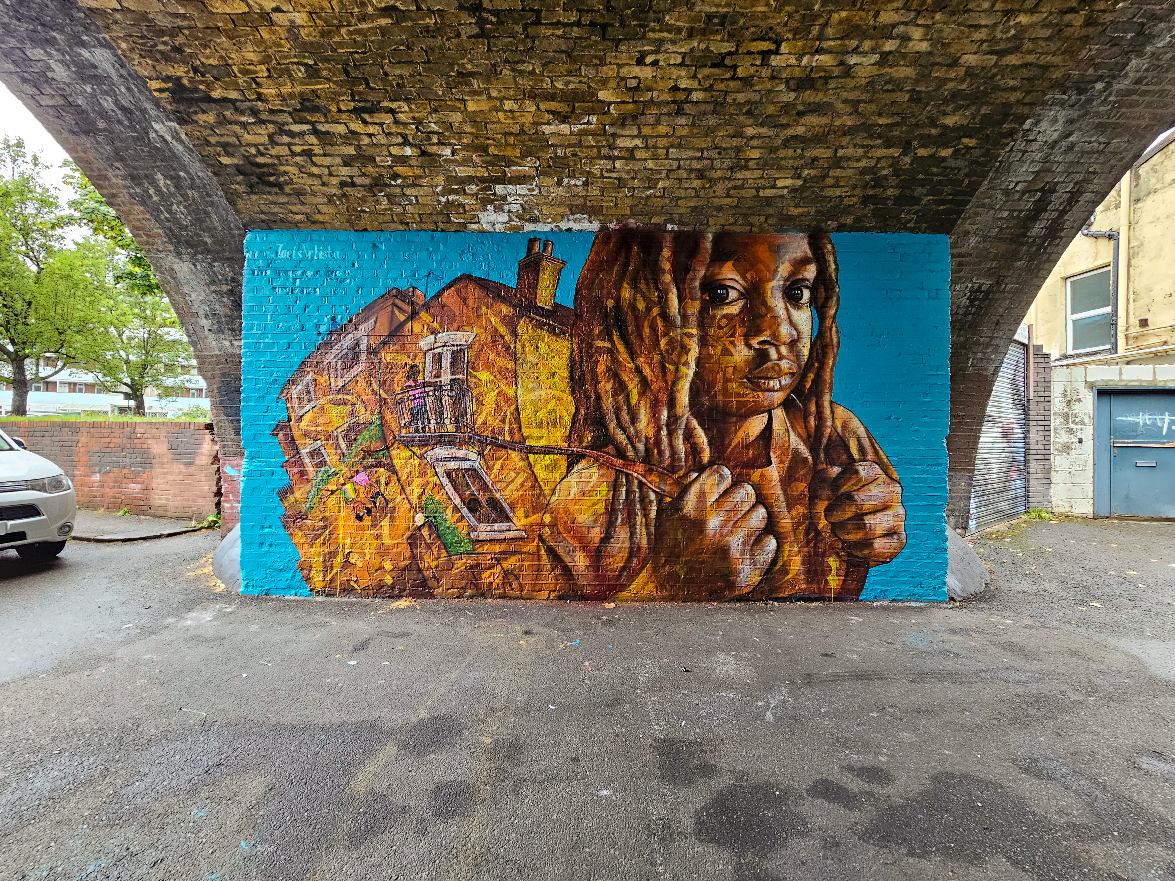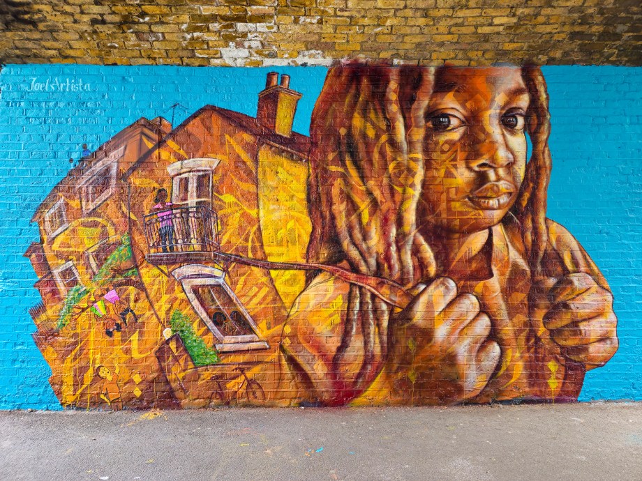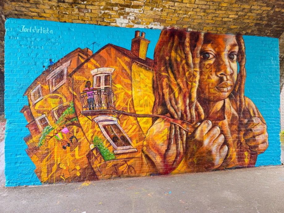 During the summer, London received a visit from American street artist Joel Artista, who painted his first work in the city since 2015. Taking to Penge, this artist who paints large-scale murals – often with active local community engagement – the world over, took a relatively small wall by his standards and nonetheless made excellent use of the wall available. This striking piece is part of a series of works the artist is working on which looks at the concept of home and what it means from individual to individual. In this case we have a South-East London child depicted with his home on his back – as wherever you go, home in some for is always with you – which features his family in the detail. What is also exceptionally impressive about this work is how the artist layered the piece, executing each layer with perfect first time precision. We assure you the pictures don’t do this delicate and warming piece justice. An absolute pleasure to see this artist paint in London and we hope it isn’t too long before we see him return to London to share his creative talent. The stunning work below was placed up in Raleigh Road, Penge, with support from London Calling Blog for SprayExhibition20.