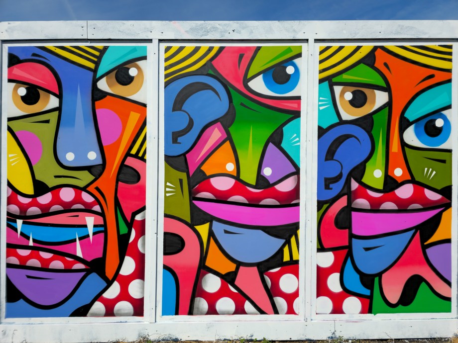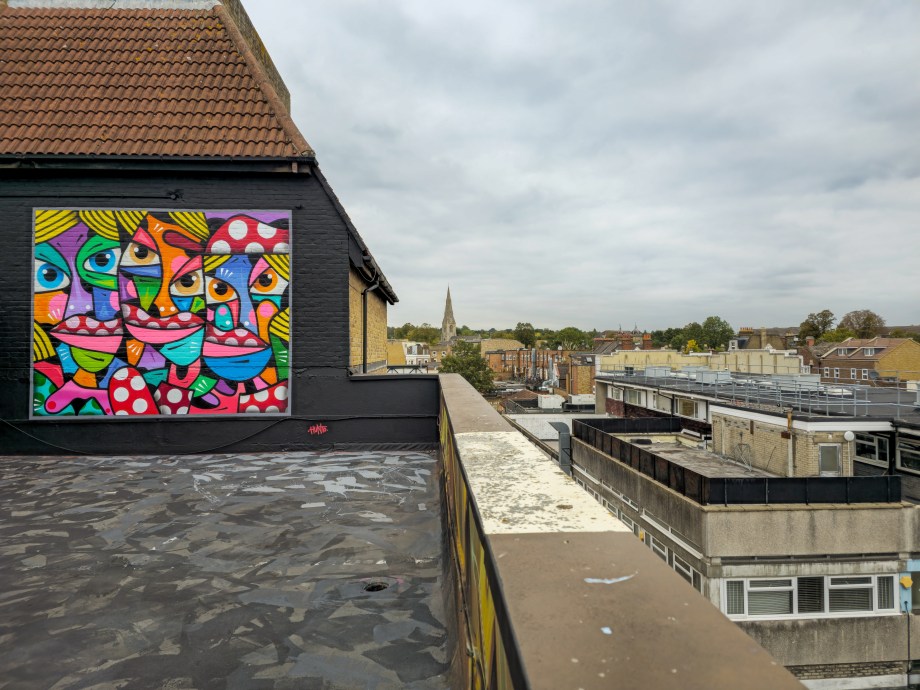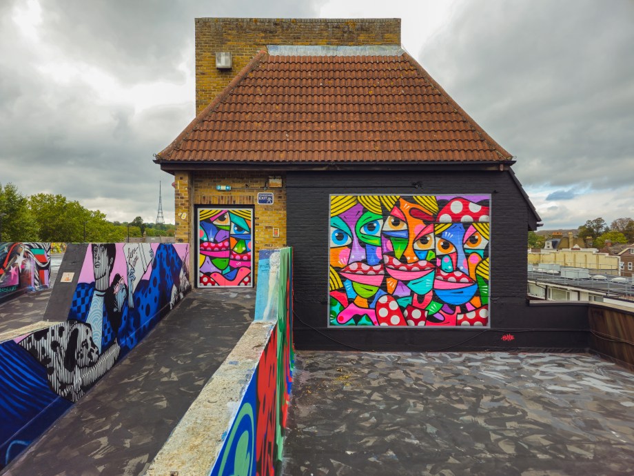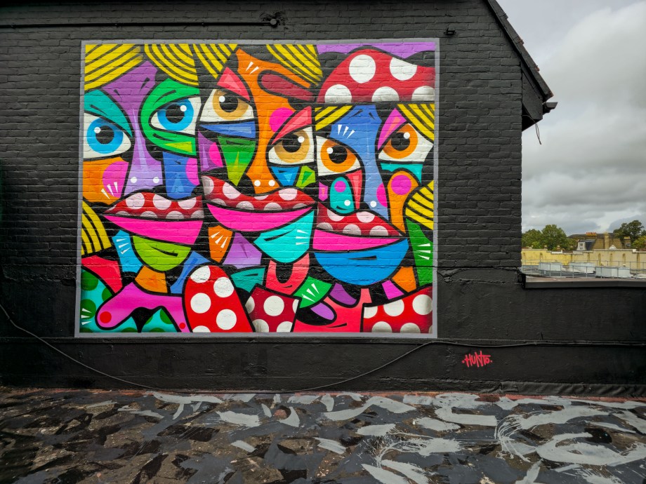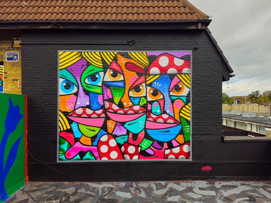 Next up in our look back at 2025 we are taking a look at a series of six wonderful additions to Penge from Italian born, but London based, street artist Hunto. Certainly no stranger to the walls of SE20, Hunto was one of the first artists to paint in Penge back in 2016, and it’s been an absolute pleasure to have him return so many times over the years. As always, he has done a fantastic job doing what he does best, namely painting his distinct and colourful signature style abstract characters. Originally a Graffiti Writer, Hunto has gone on to develop his own brand of fluid cubist creations infused with a bold block colouring, depicting for him the great universal subject – sex, intimacy and love. It is of the utmost pleasure to see how an artist’s styles and subjects evolve over time, and that certainly applies to Hunto, who is constantly honing his craft, most notably for us in his continued fine tuned colour palettes and through the addition of new shapes and increased layers. This striking series of works were put up with support from ourselves London Calling Blog as part of our SprayExhibition20 community street art project.