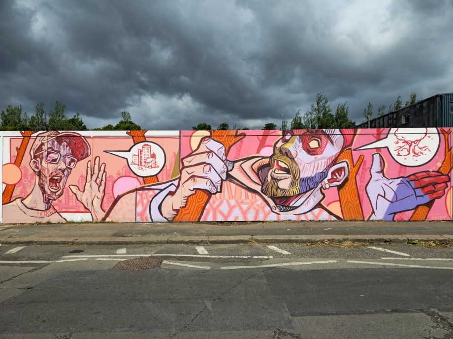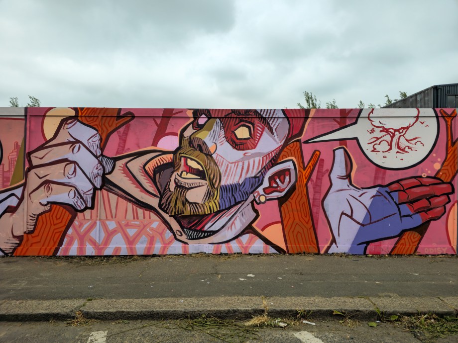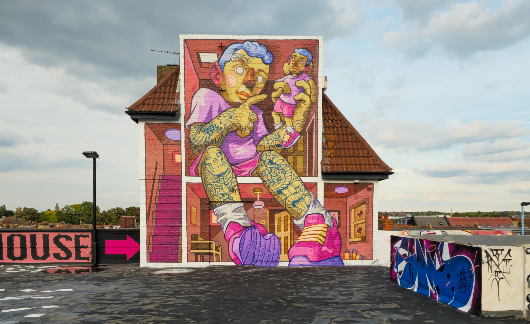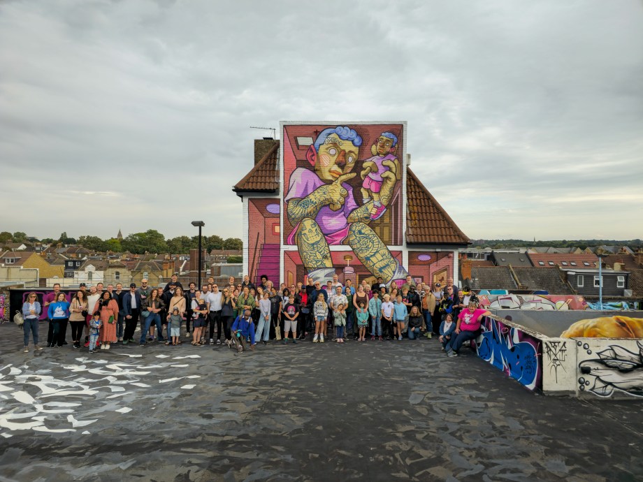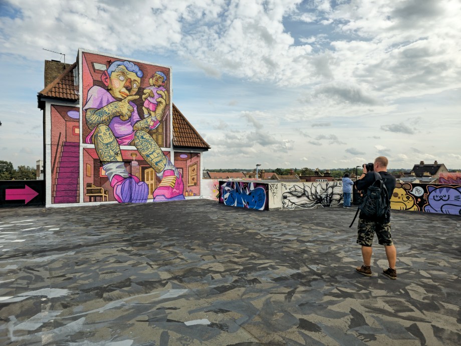 Work at the Penge Rooftop Gallery, Penge. This epic piece made masterful use of the space, as well as being a perfect finale piece on this once in a lifetime large-scale skyline wall. First class and for ourselves an absolute highlight of 2025 in Penge and London.