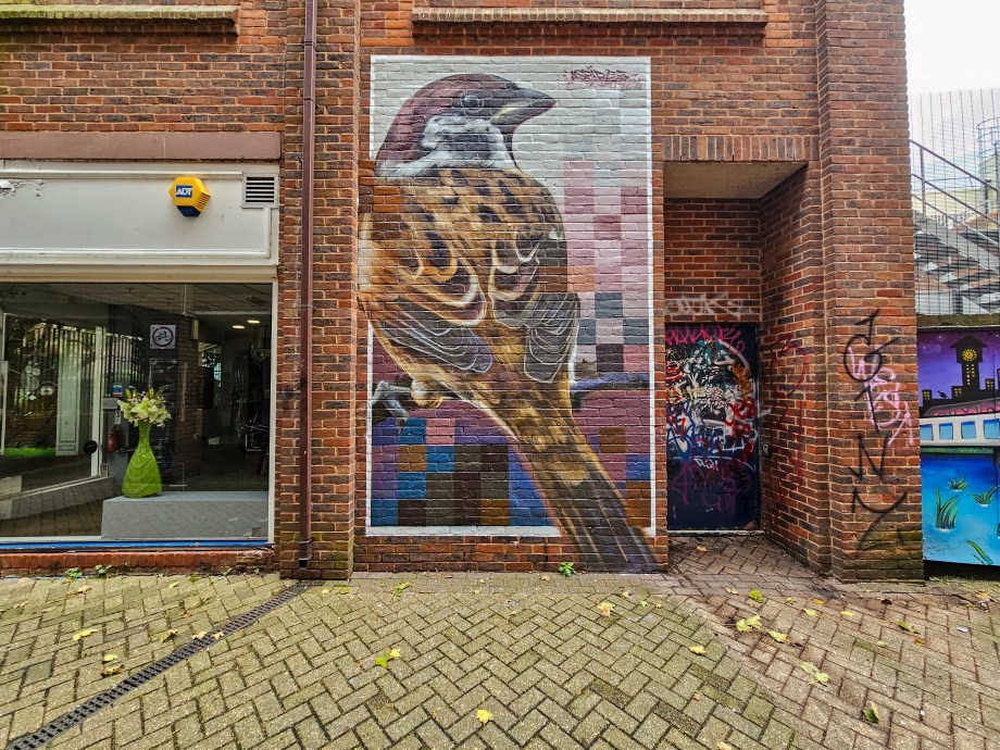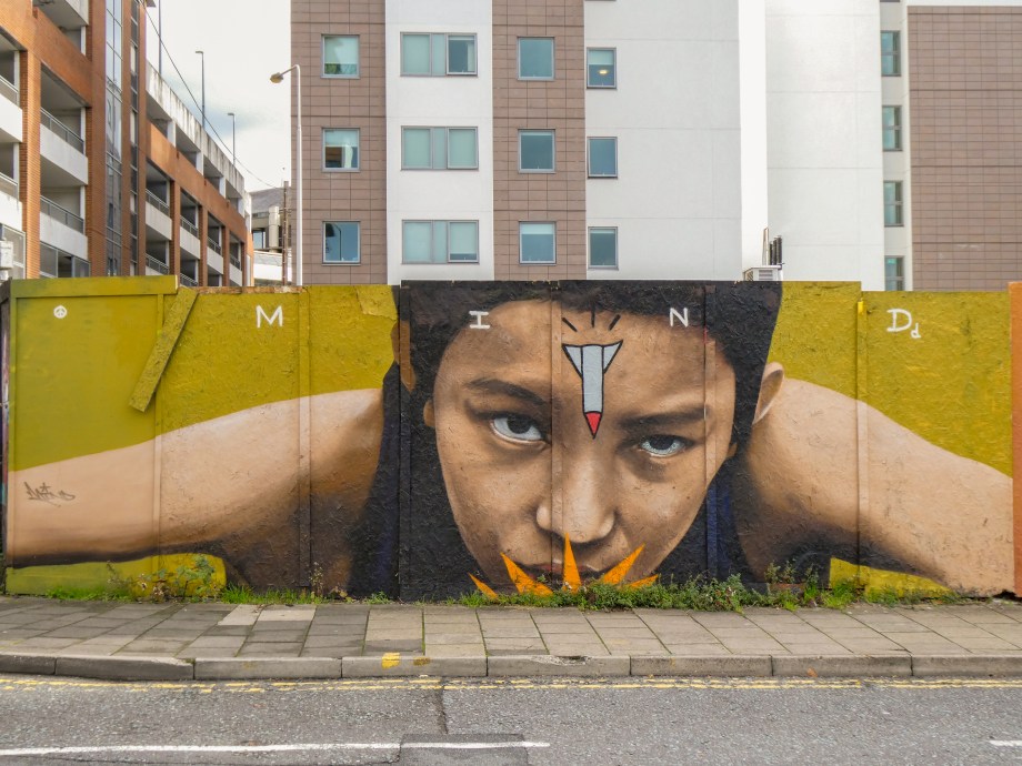 Work by Jeru Nomi at the Wood Street Cycle Hub.