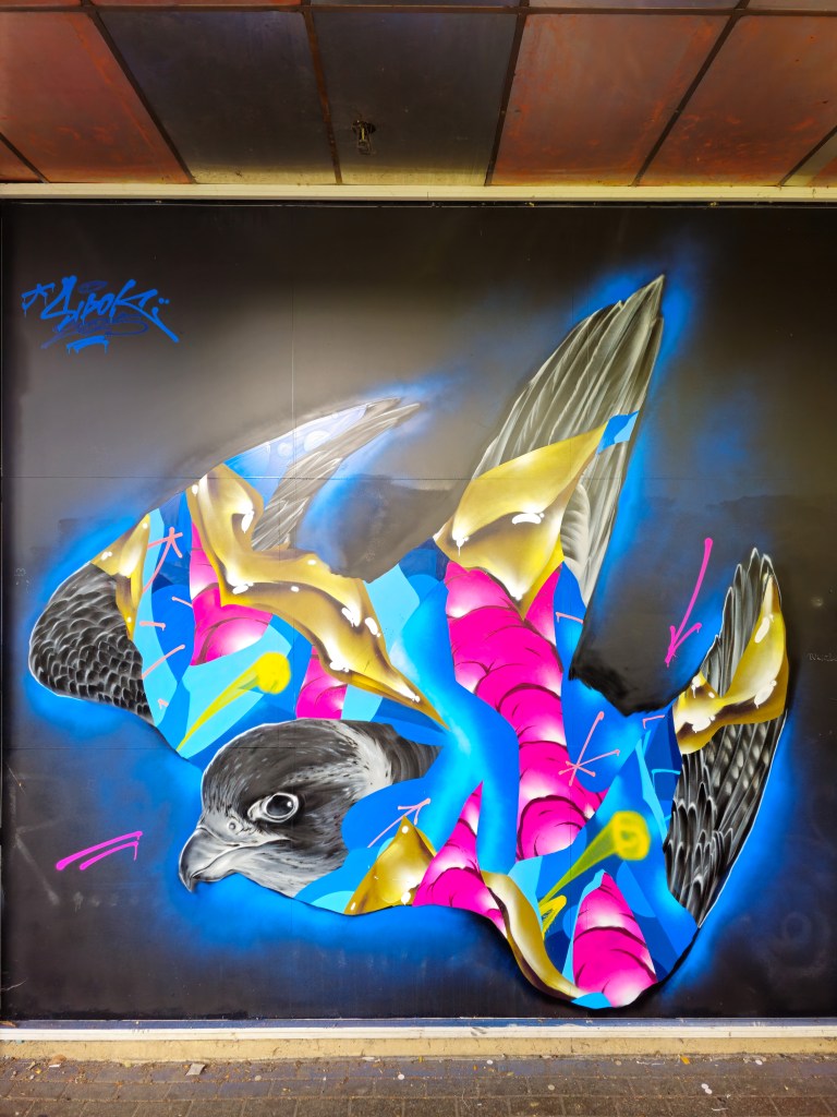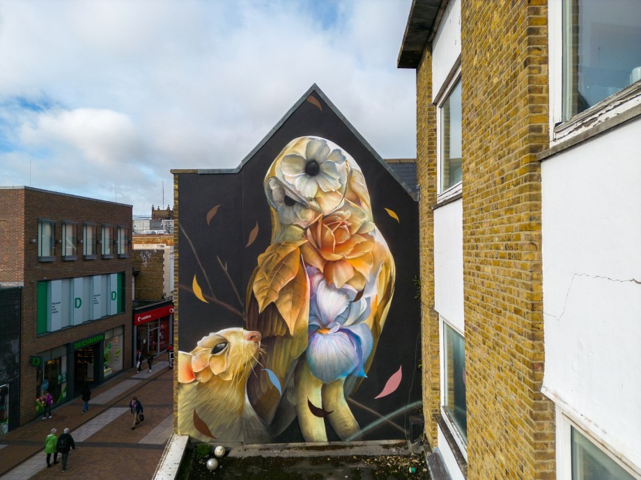 During the late summer we finally made our first visit to Kingston to see the incredible body of street art and graffiti that has been appearing for a number of years with the exceptional hard work of The Royal Borough of Street Art, which resulted in the first Kingston Street Art Festival happening last year. Kingston has long been on our agenda as somewhere to visit, having seen a steady and constant stream of high end artworks appearing in recent years, but we had until recently yet to find the time. The area certainly didn’t disappoint when we finally made it recently, the area is awash with first rate pieces all over the town. If you haven’t visited the area to see the artworks, it is well worth the trip and you won’t be disappointed. The works below are from the recent street art festival, there are more artworks to be seen in the area, making a visit even more worthwhile. The exceptional array of artworks below can be found around Kingston and were placed up for the Kingston Street Art Festival, with curation and support from The Royal Borough of Street Art.