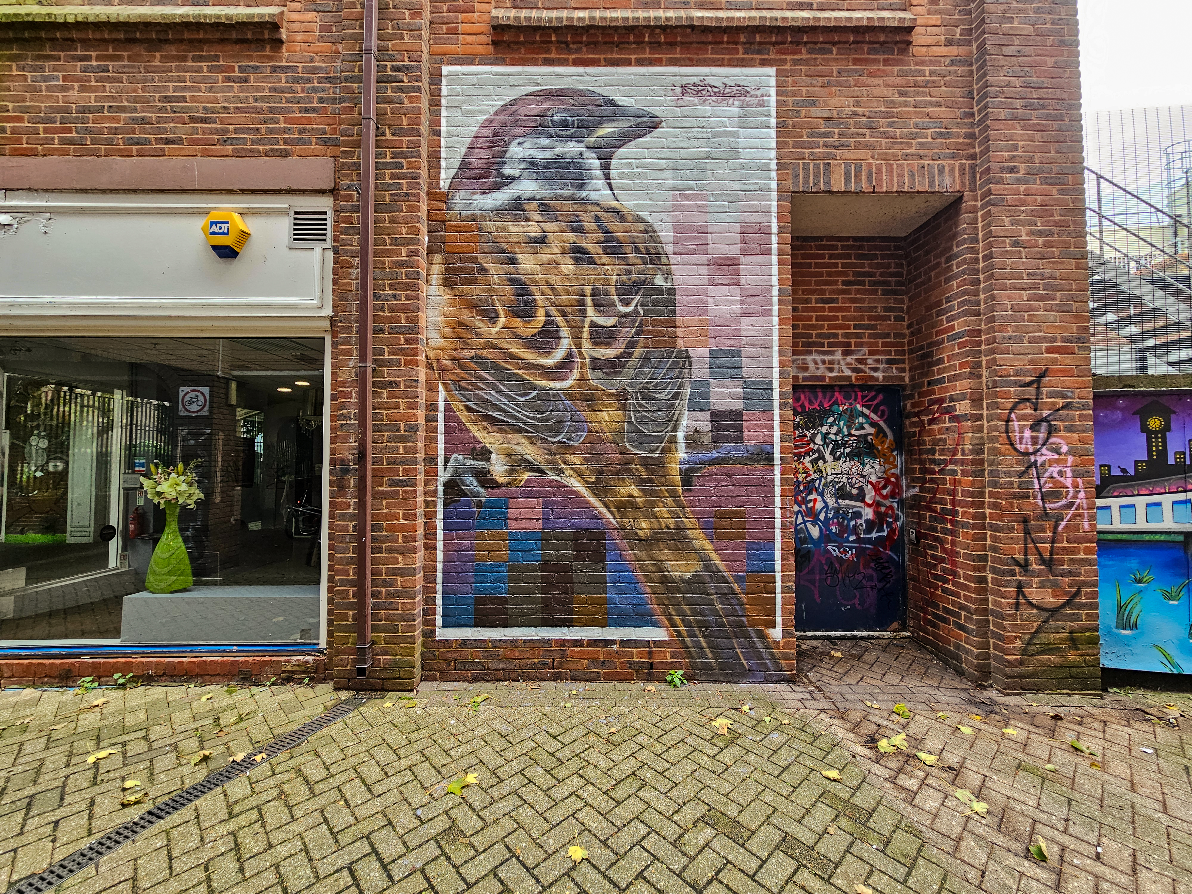 During the late summer we finally made our first visit to Kingston to see the incredible body of street art and graffiti that has been appearing for a number of years with the exceptional hard work of The Royal Borough of Street Art, which resulted in the first Kingston Street Art Festival happening last year. Kingston has long been on our agenda as somewhere to visit, having seen a steady and constant stream of high end artworks appearing in recent years, but we had until recently yet to find the time. The area certainly didn’t disappoint when we finally made it recently, the area is awash with first rate pieces all over the town. If you haven’t visited the area to see the artworks, it is well worth the trip and you won’t be disappointed. The works below are from the recent street art festival, there are more artworks to be seen in the area, making a visit even more worthwhile. The exceptional array of artworks below can be found around Kingston and were placed up for the Kingston Street Art Festival, with curation and support from The Royal Borough of Street Art.