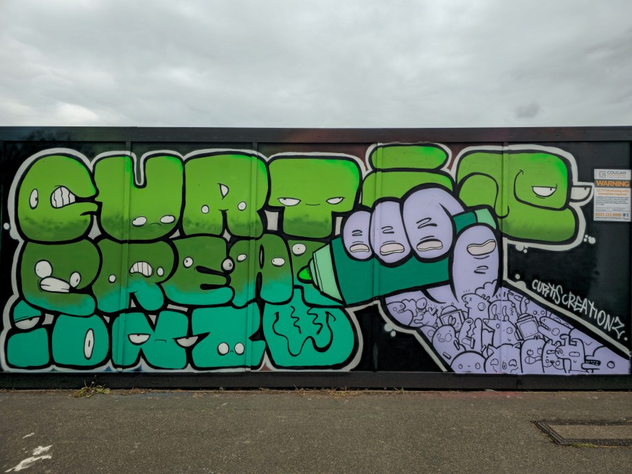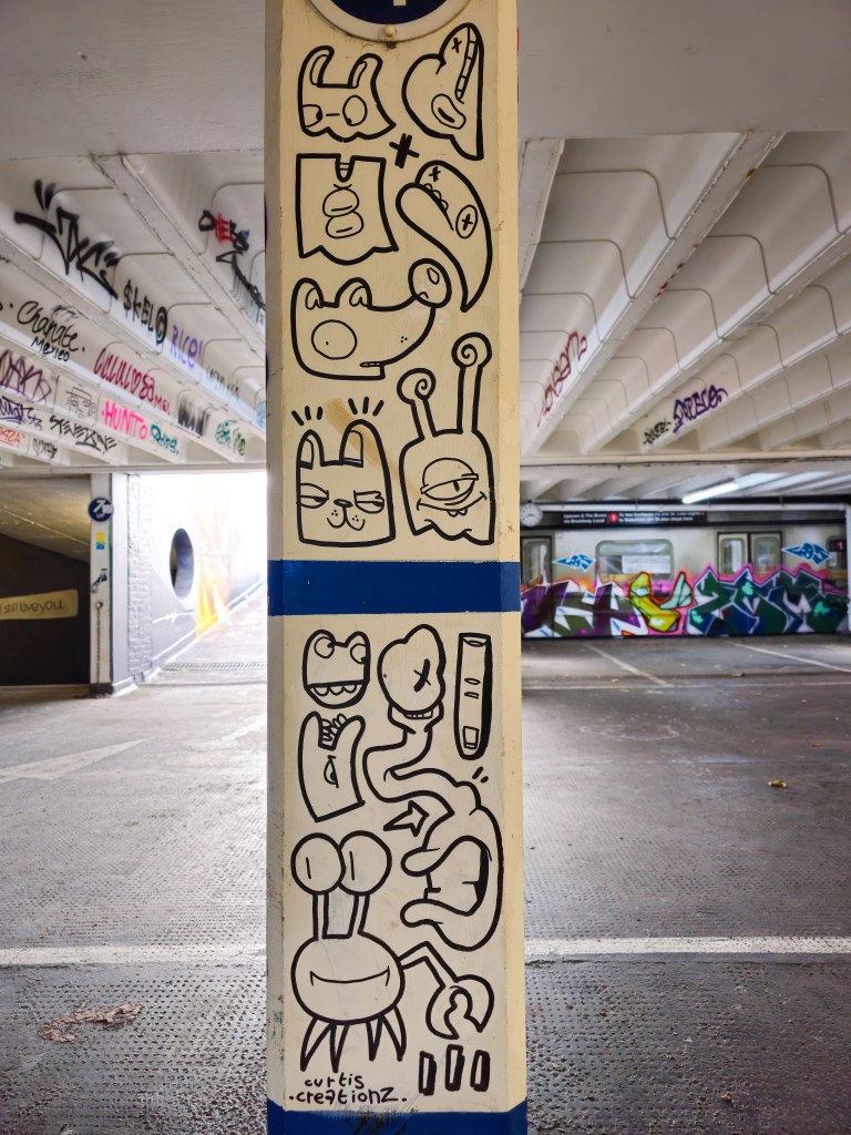 Next up in our catch up with what happened on London’s walls in 2025, with four excellent and fun works placed up in Penge by illustrator Curtis Creationz. We are big fans of this artist’s work and it has been a pleasure have her paint more regularly in Penge during the last year. Curtis Creationz’s work never ceases to bring a smile to our face and is always so masterfully executed. The fantastic trio of works below were put up with support from ourselves London Calling Blog as part of our SprayExhibition20 community street art project.