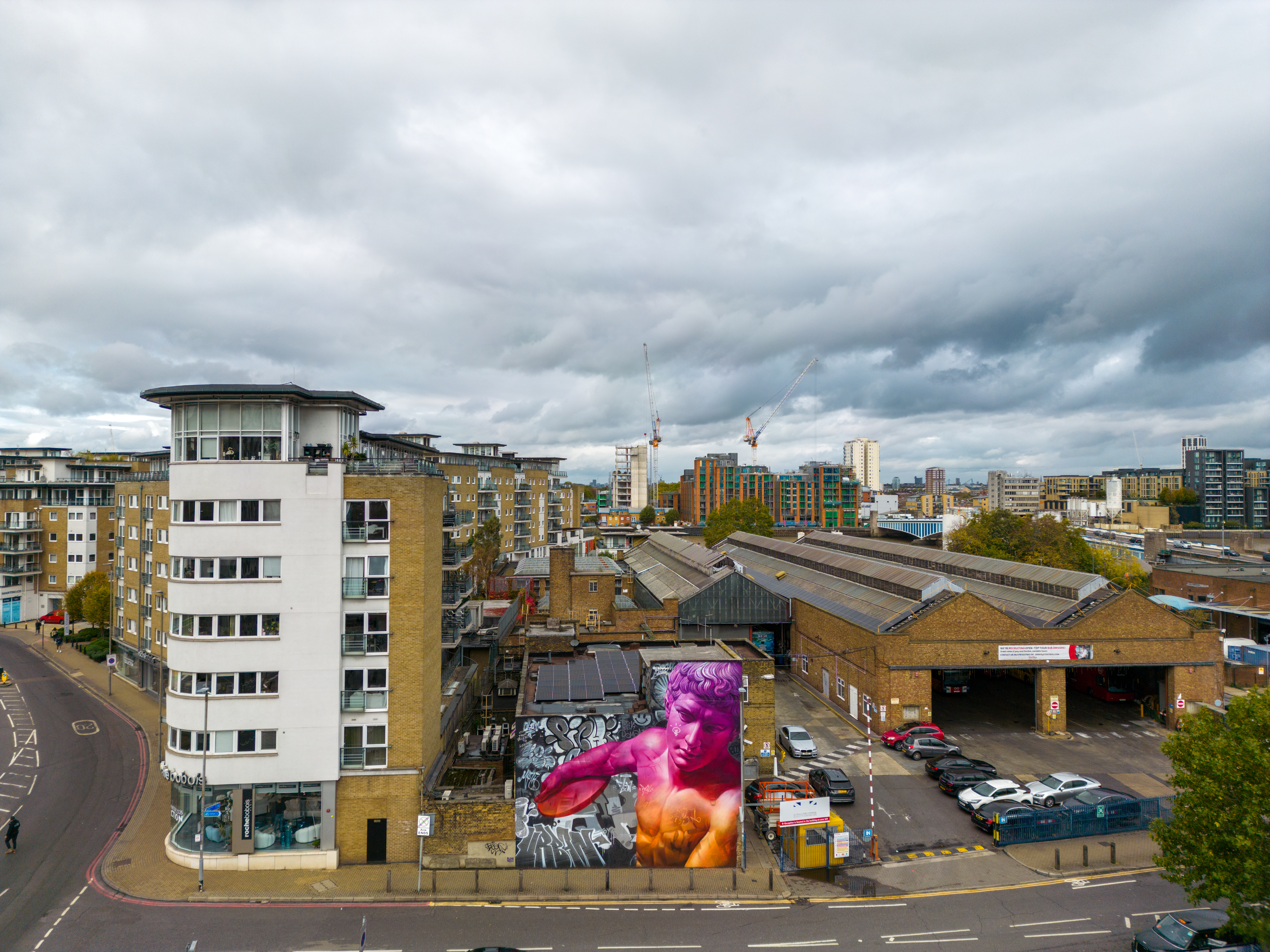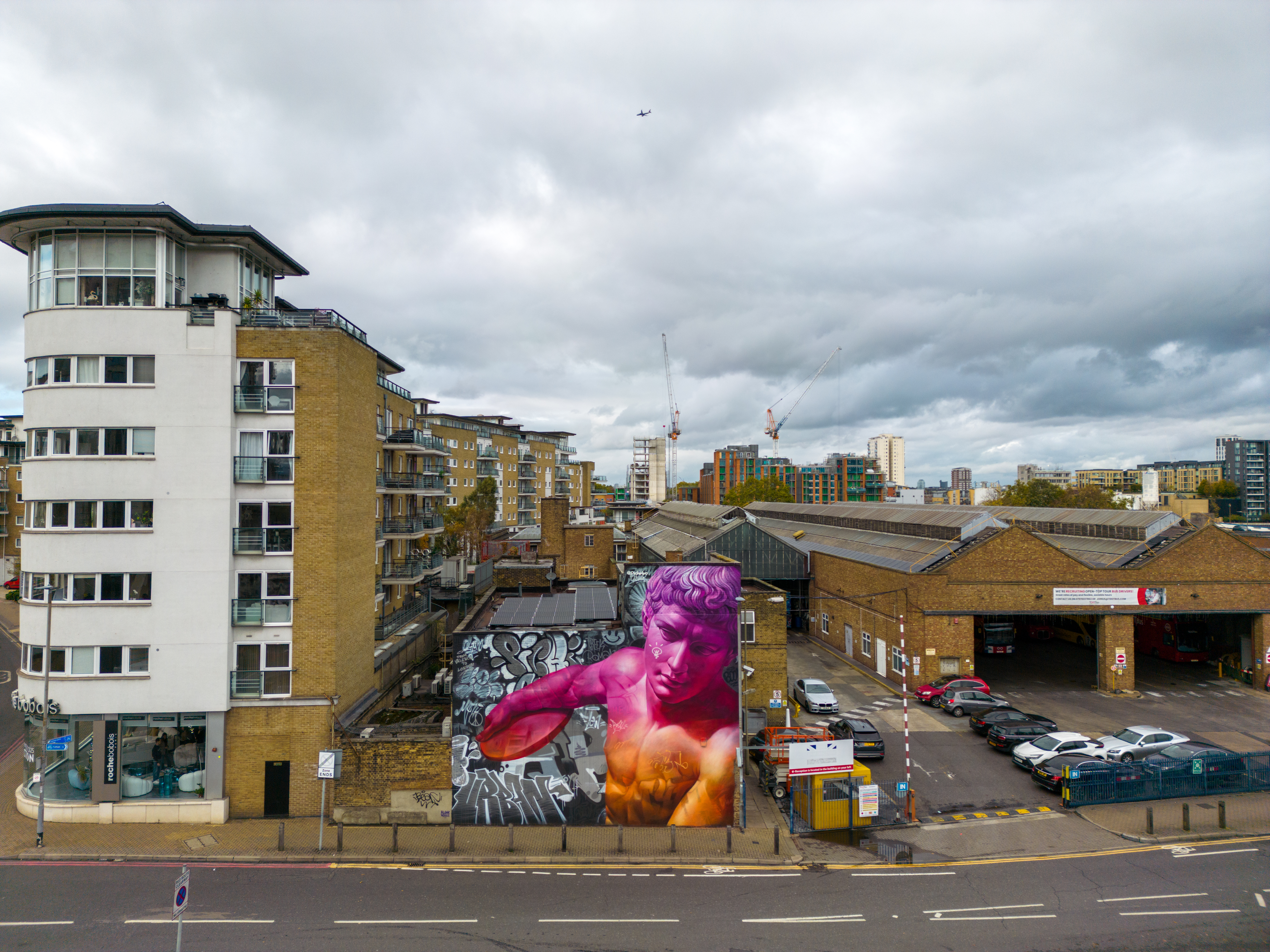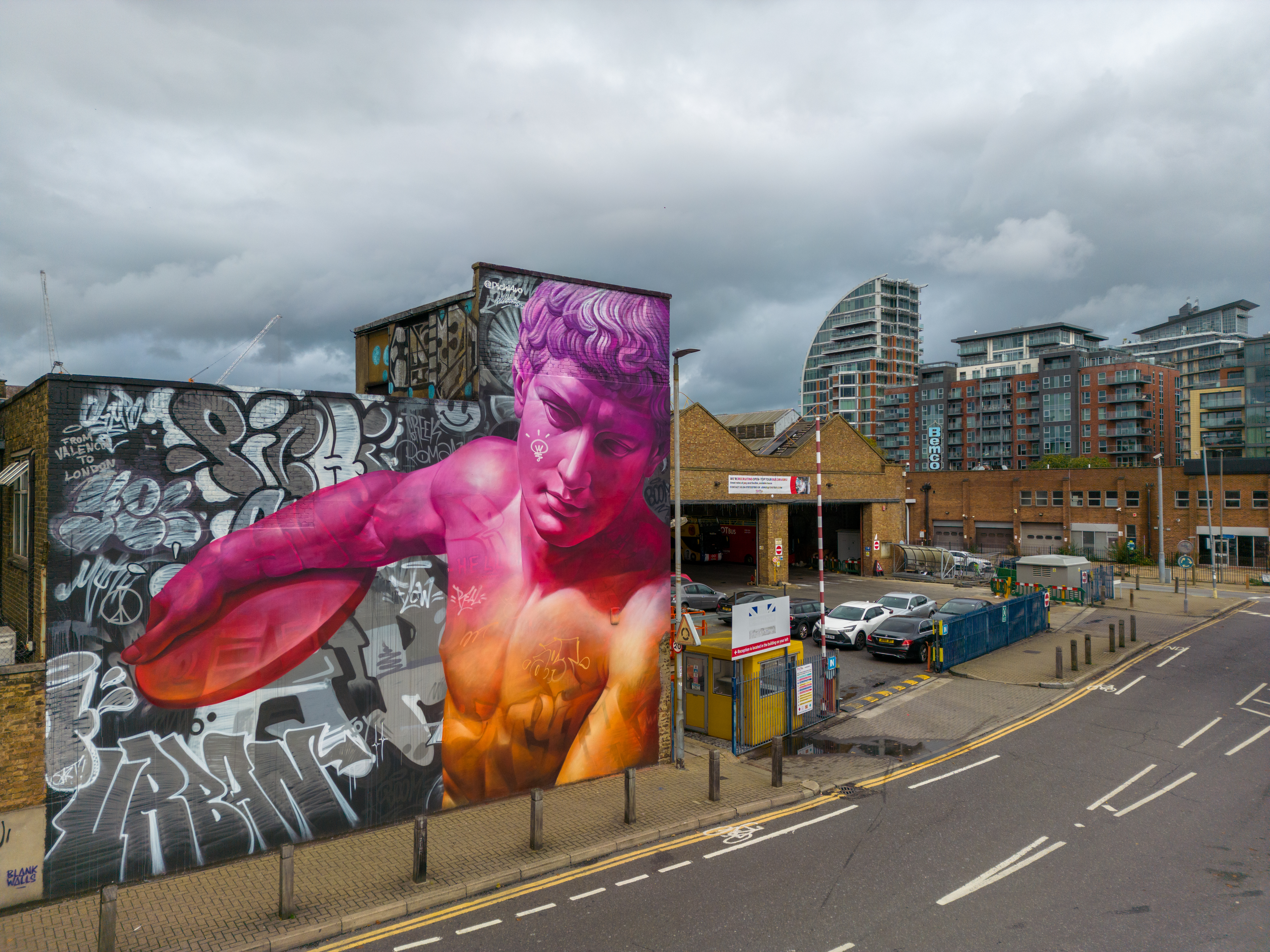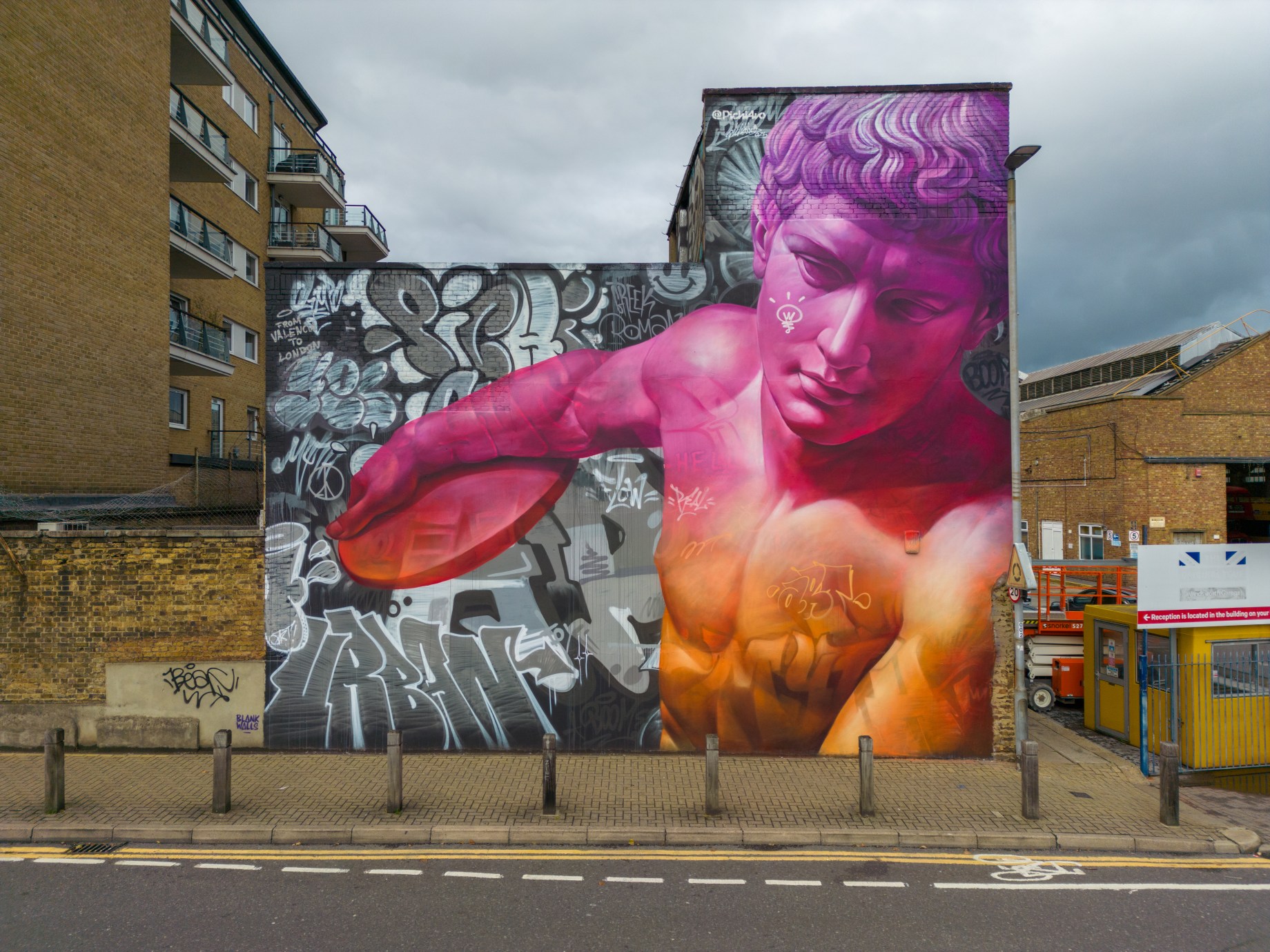 As Autumn took hold, London received a visit from Spanish duo Pichi & Avo aka PichiAvo, who placed up a large-scale piece in Wandsworth that is first rate. Presenting a work in their unique style fusing classical antiquities from Ancient Greece or Ancient Rome and placing them amid a modern graffiti setting that sets to make the traditional and subversive collide into something so fantastically magical, as is the case with this great work in Soho. It is interesting to see how the duo’s work has evolved since we last saw their work in person back in 2017, being much more rounded, depth driven and colourful. This exceptional work can be found in Marl Road, Wandsworth and was put up with support from Blank Walls.