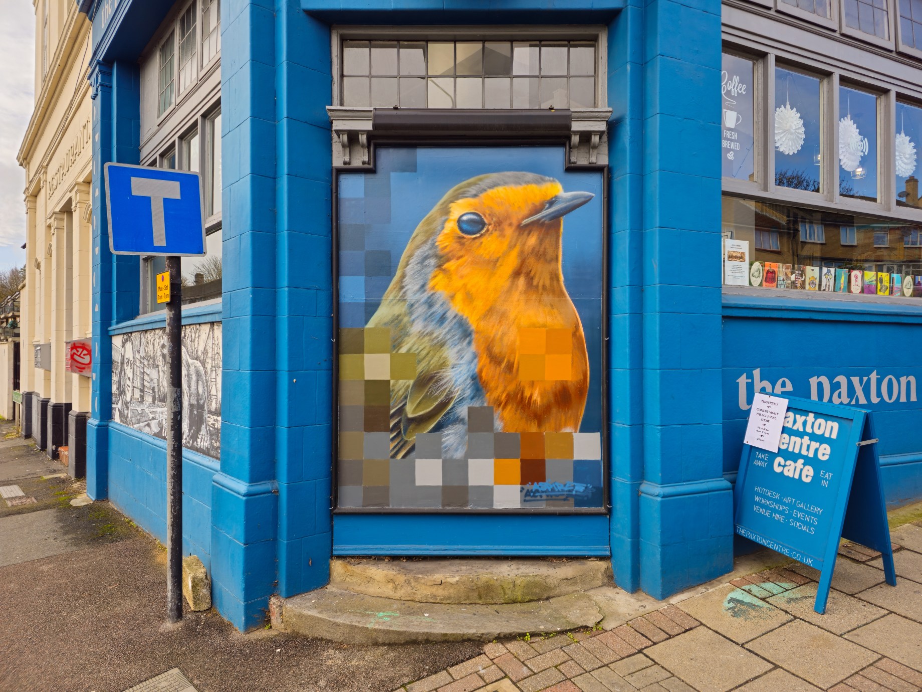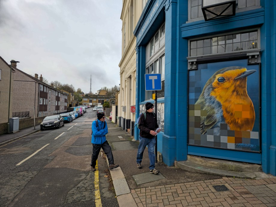 As Christmas approached Crystal Palace received a visit from the ever prolific street artist Aspire who placed up a beautiful and striking Robin on the main road across from Crystal Palace station. We always love Aspire’s realistic and predominantly avian subjects, which are accompanied by a series of pixels set to acknowledge where Aspire sources his reference images, as well as how his art is predominantly consumed in the digital age. What we also love about this artwork is how harmoniously he has tied it in with the existing colour palette on the beautiful building. The fantastic work below can be found on Anerley Hill, Crystal Palace, and was put up with support from ourselves London Calling Blog as part of our SprayExhibition20 community street art project.
