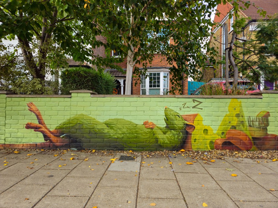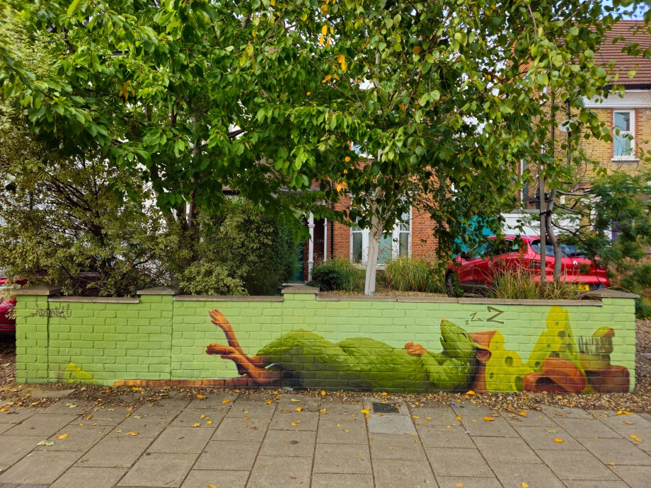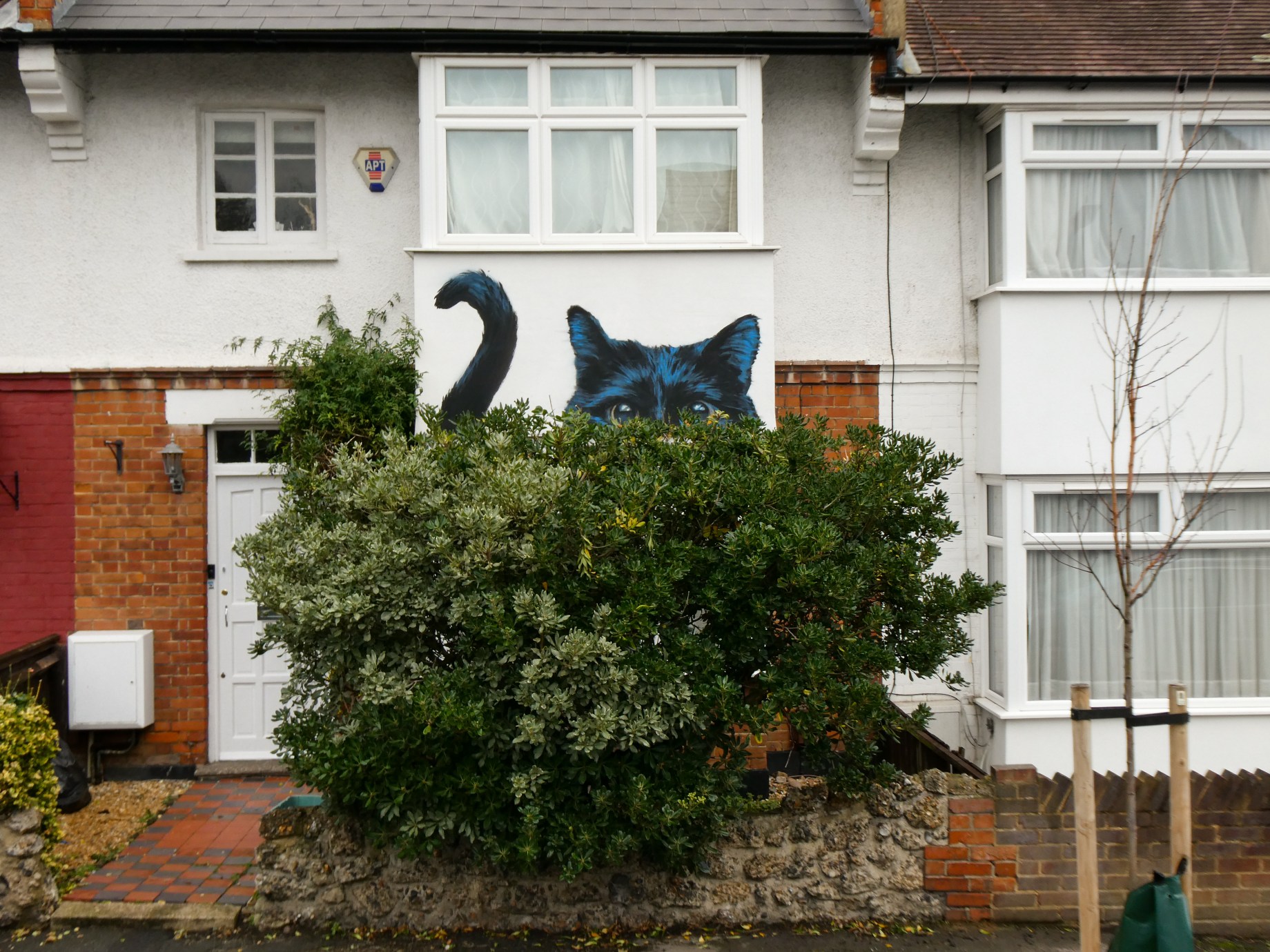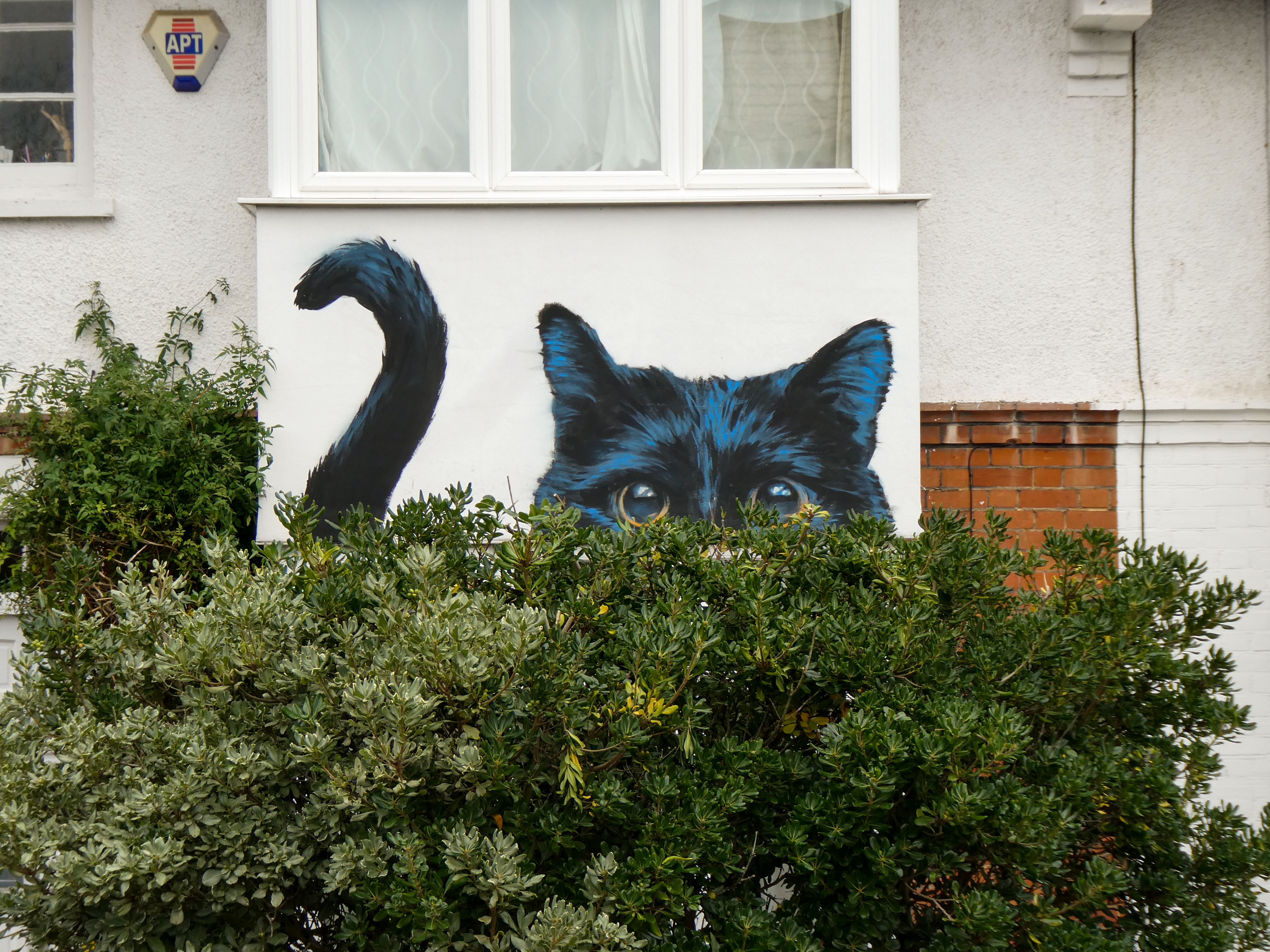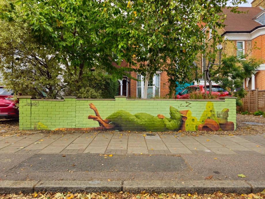 As Autumn rolled into winter the Penge area was lucky to gain a series 0f seven incredible artworks from street artist Irony. Certainly no stranger to the area, Irony was one of the first artists to paint for our community initiative ten years ago, and in that time they have hit up a substantial number of pieces which have always been some of the best contributions to the project. These works are no exception. Our favourite aspect of Irony’s street pieces is their ability to consistently take on awkward or unconventional spots and completely own them – this is best demonstrated below by the recent addition to Westbury Road in the form of a black cat peering over a bush. The fantastic array of works below were put up with support from ourselves London Calling Blog as part of our SprayExhibition20 community street art project.