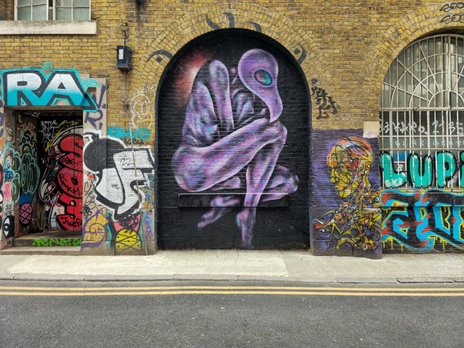 Work by Jim Vision x Madam Mizmatiki x Brave in Brick Lane.