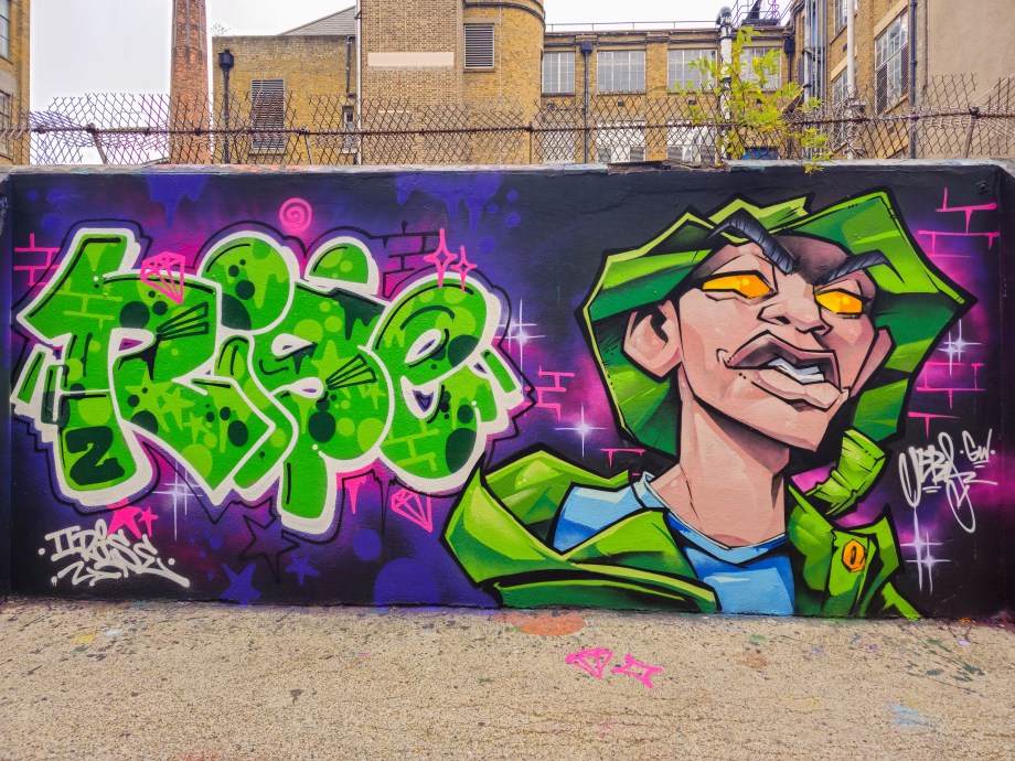 Work by Mister Tris in Kingston for the Kingston Street Art Festival.