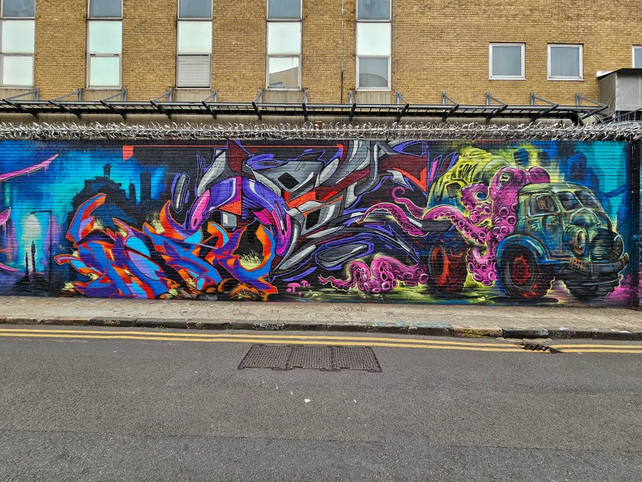 Work by Ajax Piper in Kingston for the Kingston Street Art Festival.
