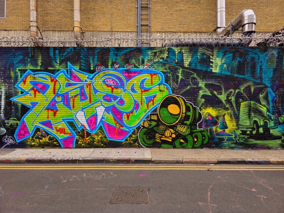Work by Fat Cap Sprays in Kingston for the Kingston Street Art Festival.