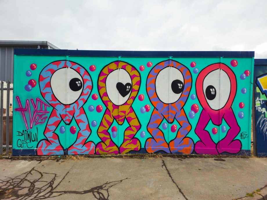 Massive thank you to everyone who has donated spots to the project – and ultimately to the local community – especially those who trusted us way back in the very beginning – business owners and residents alike. As well as an equally massive thank you to all the artists for coming to paint spaces big and small and brighten up the area. Community spirit combined with the generous support of artists who have given their time to paint for free, and provided their own materials, have certainly added a splash of colour and life to the town.
