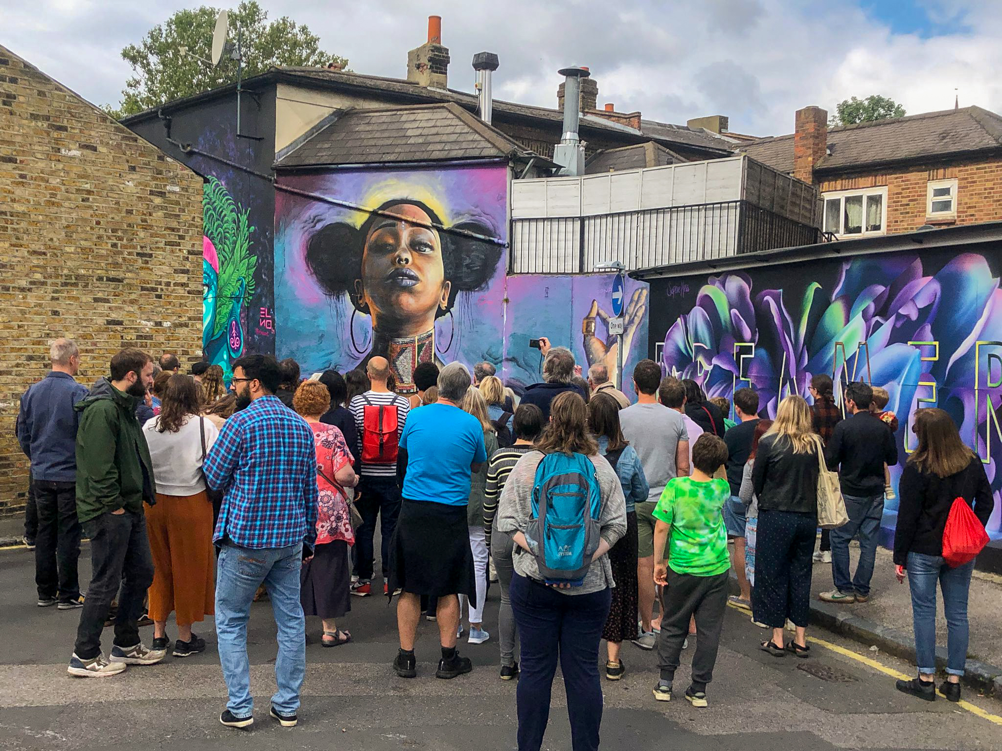 We have too many stories of positive interactions with members of the local community regarding the beneficial impact the art has had on the area. So we will only touch upon a few, such as the gentleman who left the nearby hospice to come see the newest painting in Penge despite being so unwell. The headmaster who shared with us that one of the paintings was the only thing that would help regulate a neurodivergent child in the school, with staff bringing him into the playground when dysregulated to see the artwork. The parents who told us that their toddler says good night every evening to the dog visible from his bed. The man who told us how his wife is unable to leave the house but loves the view from their window of the painted shutters in Maple Road. Multiple people who told us that the artworks about the area were the only thing that kept them sane during the Covid lockdowns. At least three schools – including two outside of Penge – have added the street art as a school trip for primary school children. For all the people who aren’t a fan of the art in the area – mercifully a very small minority – and like a moan or occasional abusive rant, any one of these stories above have made all the time, effort and occasional stress worth it for that moment alone. The street art has made an impact in people’s lives in a way we never anticipated as being possible when we started on this adventure, and we love the sense of pride it has instilled in the area.