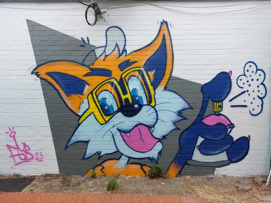 17/10/21 – Fat Cap Sprays leaves his second work of the day on Parish Lane featuring Sonic the Hedgehog’s sidekick Tails.