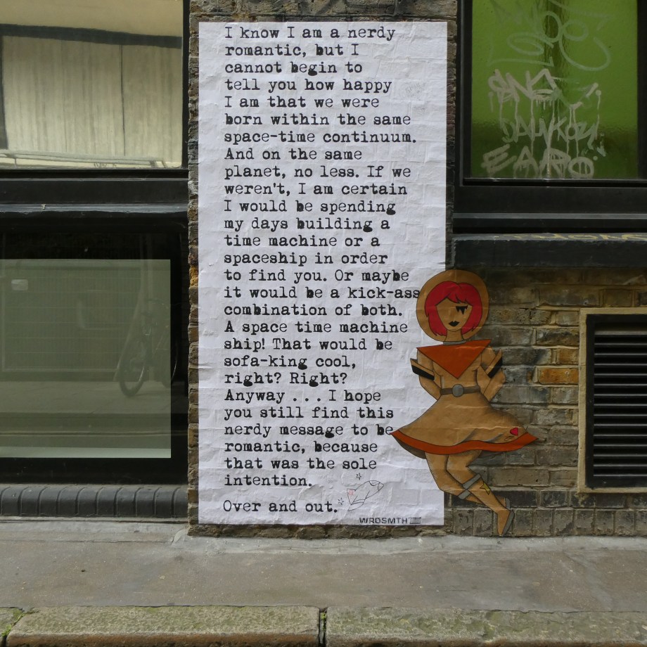 In May this year London received a visit from American street artist WRSMTH, who as whenever he is visiting London, embarked on a flurry of activity, hitting pieces up all over the place. When WRDSMTH has visited an area of London, for the coming days and weeks, you cannot move for seeing typewriters.  Unsurprisingly WRSMTH […]Read Post ›