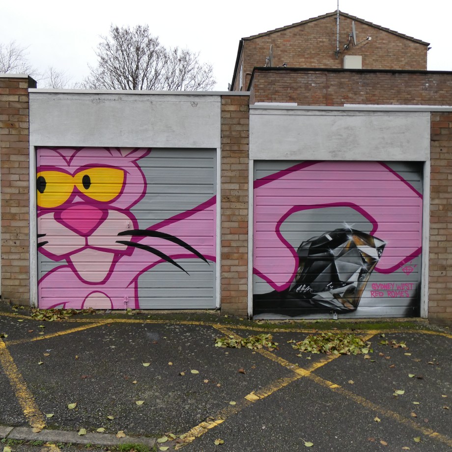 During the summer Anerley received a visit from London graffiti writer Red Romes and visiting Australian street artist Sydney West who hit up this fantastic Pink Panthers collaboration across a pair of garage doors in St Hugh’s estate. Fusing Red Romes illustrative styling in the form of the iconic Pink Panther character and Red Romes photorealistic […]Read Post ›