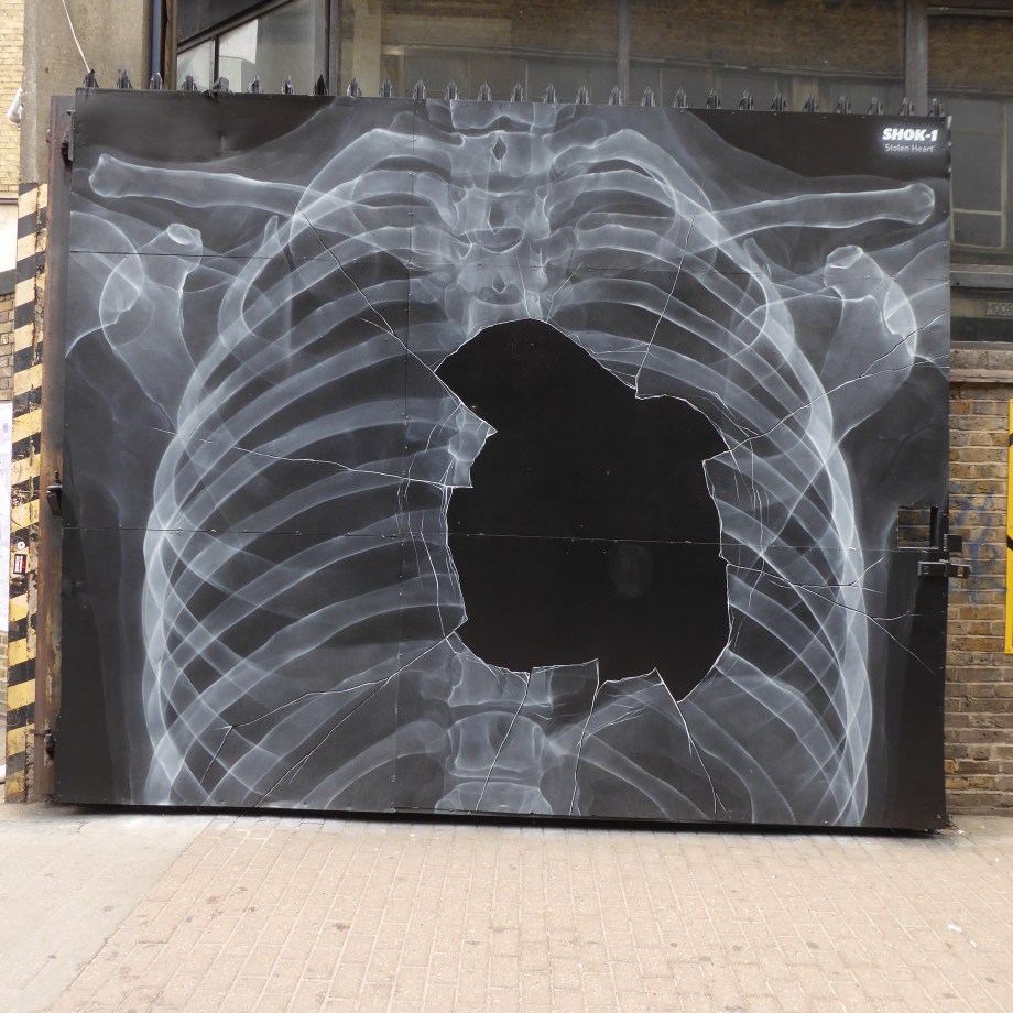 New Shok-1 Street Art ‘Stolen Heart’ in Brick Lane