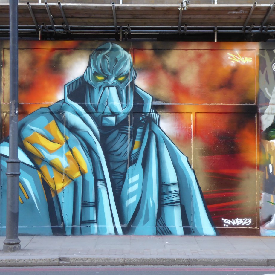 A few weeks back saw Brighton based Street Artist Snub23 visit London, something we would like to see more often, and take to Shoreditch in order to paint his latest mural in the capital. The piece features Snub’s trademark character ‘Mongrel’, from ABC Warriors – from the comic strip 2000ad – on this occasion set watching the ever flow of […]Read Post ›